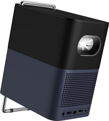 Projektorens elegante, lette design inkluderer et innebygd VersaGrip-bærehåndtak og et 0-15° justerbart stativ, som gjør den enkel å flytte og sette opp hvor som helst. Perfekt for stuen, hagen eller på reise.