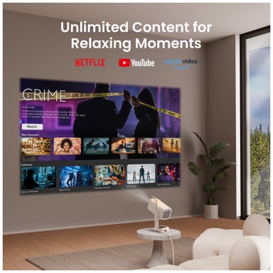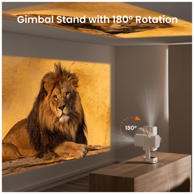 Med 250 lumen får du høy lysstyrke og krystallklare bilder selv i godt opplyste rom. Den korte projeksjonsavstanden og 180° gimbal-stativet sikrer større frihet ved plassering for å gjøre det enklere å finne det perfekte stedet for projektoren.