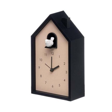 En sjarmerende vekkerklokke i form av en moderne gjøkur – perfekt for deg som vil våkne stille og rolig. Når alarmen går, spretter en liten fugl ut av huset og kvitrer forsiktig. Snooze-funksjonen aktiveres ved å trykke på skorsteinen, og alarmen gjentas automatisk etter fem minutter.