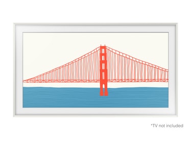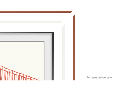 Samsung The Frame TV forvandles til et kunstverk når den slås av, på en slik måte at du ikke vil kunne se forskjell fra andre malerier du har hengende på veggen. For at du skal kunne matche TV-en optimalt med øvrig interiør, har Samsung utviklet en mengde rammer i ulike farger som du kan velge mellom og bytte til etter behov.