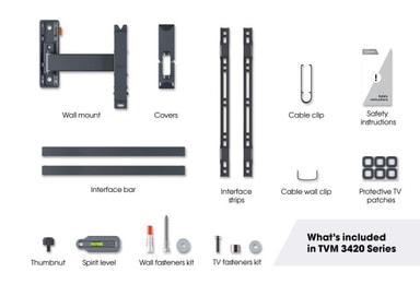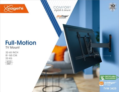 Vogels COMFORT Full Motion TV veggfeste TVM3425 er her for å høyne din seeropplevelse. Den kommer med 20˚-tilt og 2 dreininger for full bevegelse, en lås for enkel utløsning. Klips for kabler og beskyttende lapper følger også med. Denne veggmonteringen fungerer med TV-er fra alle merker og DrillRight-appen kan enkelt lastes ned for hjelp under installasjon.