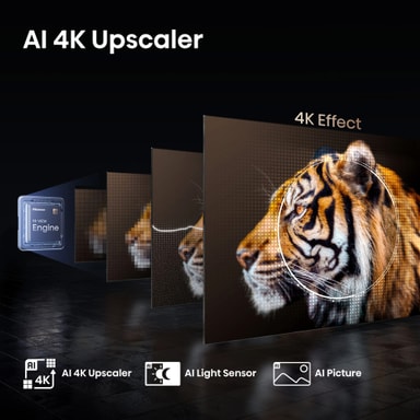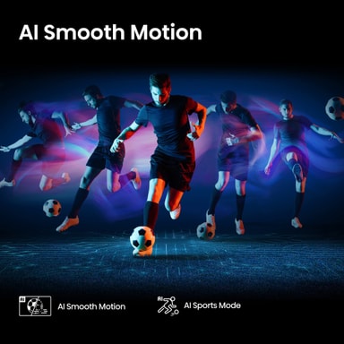 AI Smooth Motion (MEMC) rekonstruerer raske bilder i bevegelse for å redusere uskarphet og hakking, og holder sport og actionsekvenser skarpe. En integrert AI Light Sensor justerer lysstyrken i henhold til omgivelseslyset slik at bildet alltid føles behagelig og godt balansert, samtidig som det bidrar til å tilpasse strømforbruket.
