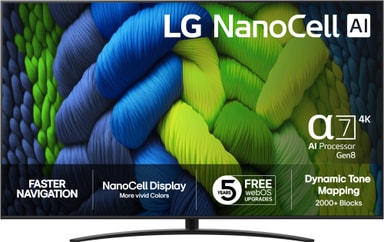 Opplev realistisk bildekvalitet med NanoCell-presisjon. NANO82 er utstyrt med NanoCell-teknologi og α7 AI Processor 4K Gen8, og byr på levende farger, skarpe 4K HDR10-bilder og smidig oppskalering. Med webOS, smarte funksjoner og et elegant stativ er dette en flott TV til hverdagens underholdning.
