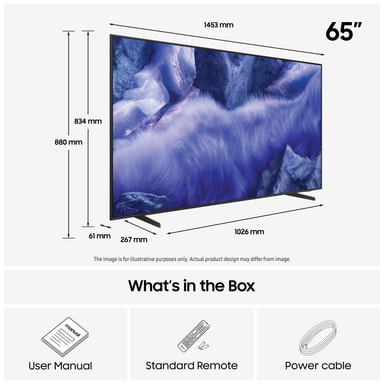 Hvis du henger TV-en på veggen og bruker en dekorativ kabelskjuler får du et veldig pent, ryddig og plassbesparende TV-oppsett. Pass på at veggfestet tåler vekten av TV-en du velger. Hvis du scroller lenger ned på siden kan du se forslag til veggfeste til denne TV-en