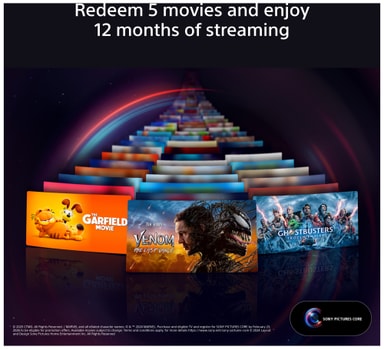 Dolby Vision, en teknologi som vanligvis hører hjemme på kino, er nå tilgjengelig på BRAVIA 3. Det betyr at du kan nyte filmatiske detaljer, kontrast og farger hjemme. For å få full glede av den kinoaktige opplevelsen med én gang, kan du løse inn 5 filmer og 12 måneder med ubegrenset strømming på SONY PICTURES CORE – den eksklusive filmappen.