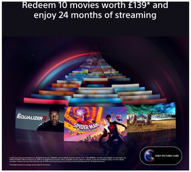 Du kan løse inn 10 filmer i SONY PICTURES CORE-appen5, med 24 måneders strømming. Fra IMAX® Enhanced til Dolby Atmos®6-titler, det finnes ingen bedre måte å se hvor utrolige filmer er enn på BRAVIA 9!