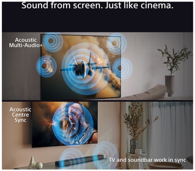 Denne TVen gir deg flerdimensjonal lyd fra forskjellige retninger ved å bruke fantomhøyttalere skapt av 360 Spatial Sound Mapping i samspill med Dolby Atmos. Den har også to oppover-pekende strålediskanthøyttalere som larlyden komme rett fra skjermen.Acoustic Center Sync gjør TVen til et naturllig midtpunktet for lydanlegget ditt, slik at du kan på enkelt vis administrere alle dine lydenheter.