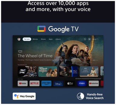 Over 10 000 apper og spill er tilgjengelige på denne Google TV-en, sammen med talesøk8, Apple AirPlay 29 og innebygd Chromecast10.